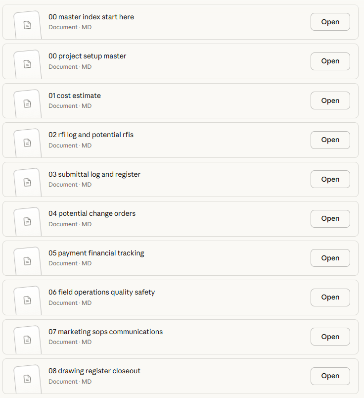 Watch my demo video of the 5 specialized Claude AI Skills generate complete project documentation in parallel—from $176K rooftop estimate to daily field reports to payment applications—all coordinated through a central Assistant Project Manager (APM) hub